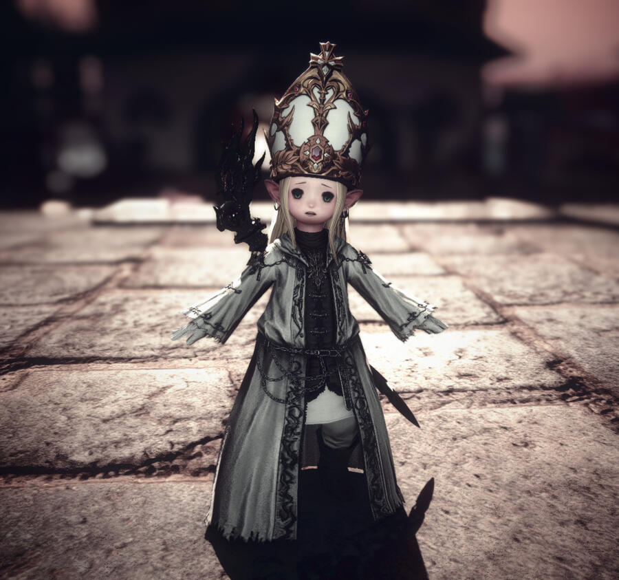 Elise Typhoon is a Lalafell who openly claims to be the self-proclaimed pope of a small, unstable cult, a belief she holds with alarming conviction. Akari finds Elise exhausting, erratic, and deeply unpleasant to deal with, making no effort to hide her irritation during their interactions. Despite this, Elise maintains a surprisingly effective web of contacts and rumors, often surfacing information that proves accurate when others fail. Akari tolerates her presence strictly for this reason alone, keeping the relationship transactional and distant, and disengaging the moment Elise drifts from usefulness into theatrics.