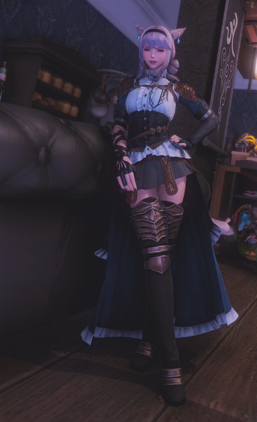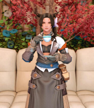 In the present day, Akari lives in the Mist as the proprietor of a Café Enchanté and Boba Shot Lounge, and the steady leader of the Matcha Café Free Company. Her days are quieter now and filled with routine, responsibility, and keeping her people safe rather than taking daily hunting contracts. She remains vigilant by habit, but no longer allows violence to define her every step.Andrea is a constant presence in her life, loud where Akari is reserved and relentlessly cheerful where Akari is quiet and reserved. Andrea’s energy tests her patience daily, talking too much, laughing too loudly, and inserting herself into matters Akari would rather handle alone. Akari responds with little more than flat looks, dry remarks, or silence, allowing Andrea to burn herself out without rising to the bait. Despite the friction, she never asks Andrea to leave. In her own quiet way, Akari trusts her completely. Though her life has settled into something steady, Akari still carries the weight of those she has lost. Some nights, when the house is quiet and the sea wind drifts in from Limsa, she allows herself to remember them